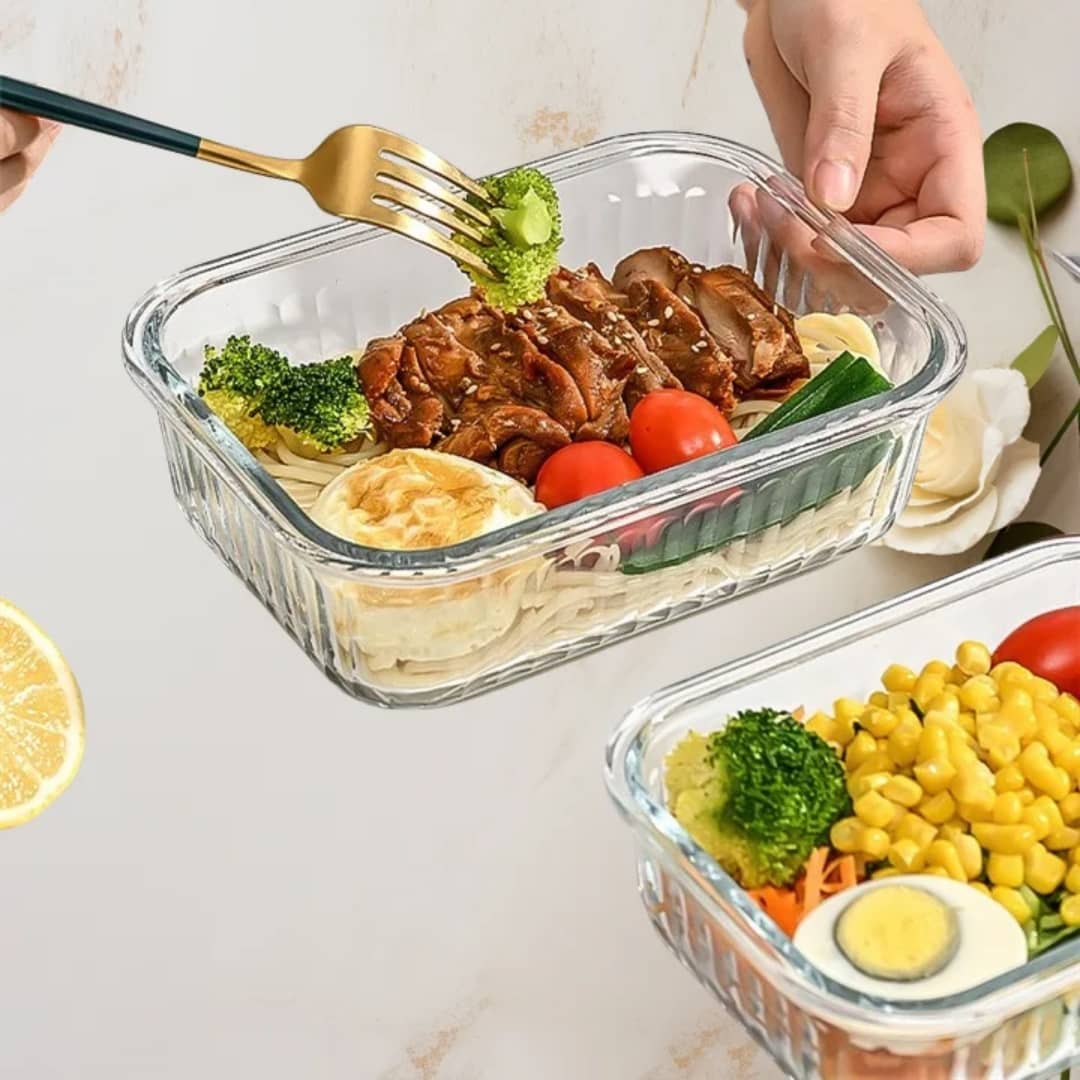 Set de 3 Boîtes de Conservation Rectangulaires en Verre avec Couvercles Hermétiques - Micro-ondes et Frigo