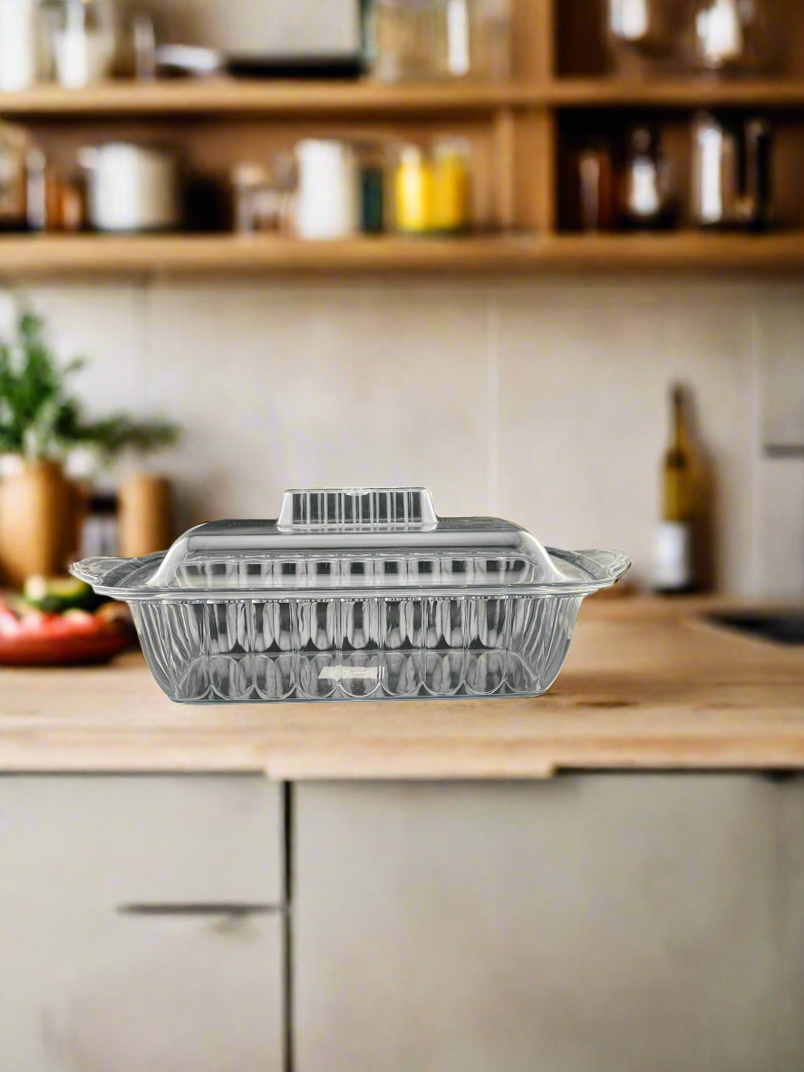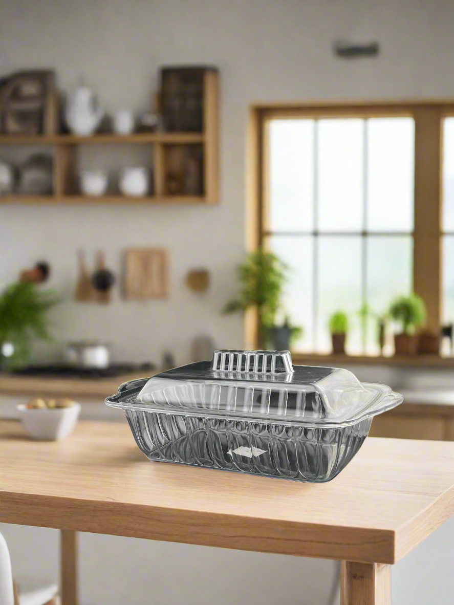 Ce plat rectangulaire en acrylique transparent avec couvercle est une solution pratique et esthétique pour présenter ou conserver vos repas. Grâce à son design élégant avec parois rainurées et son matériau incassable, il est parfait pour la maison, les réceptions ou les déplacements.