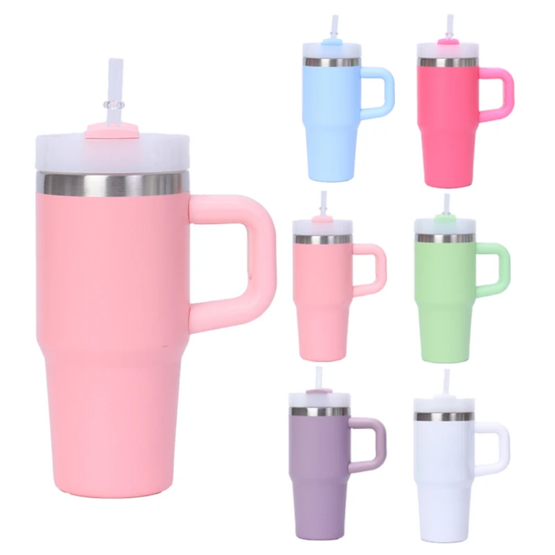 Gobelet Isotherme en Inox avec Anse et Paille Couvercle Silicone Antifuite hauteur 18,3 cm largeur 12,1 cm