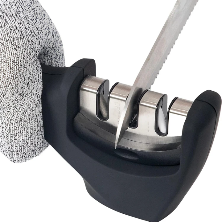 Grâce à notre aiguiseur de couteaux 3-en-1, dites adieu aux lames émoussées et bonjour à la coupe parfaite.