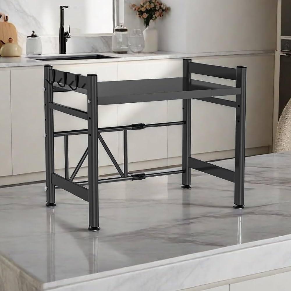 Support de Micro-ondes Multifonction en Métal – Étagère de Rangement de Cuisine avec Crochets